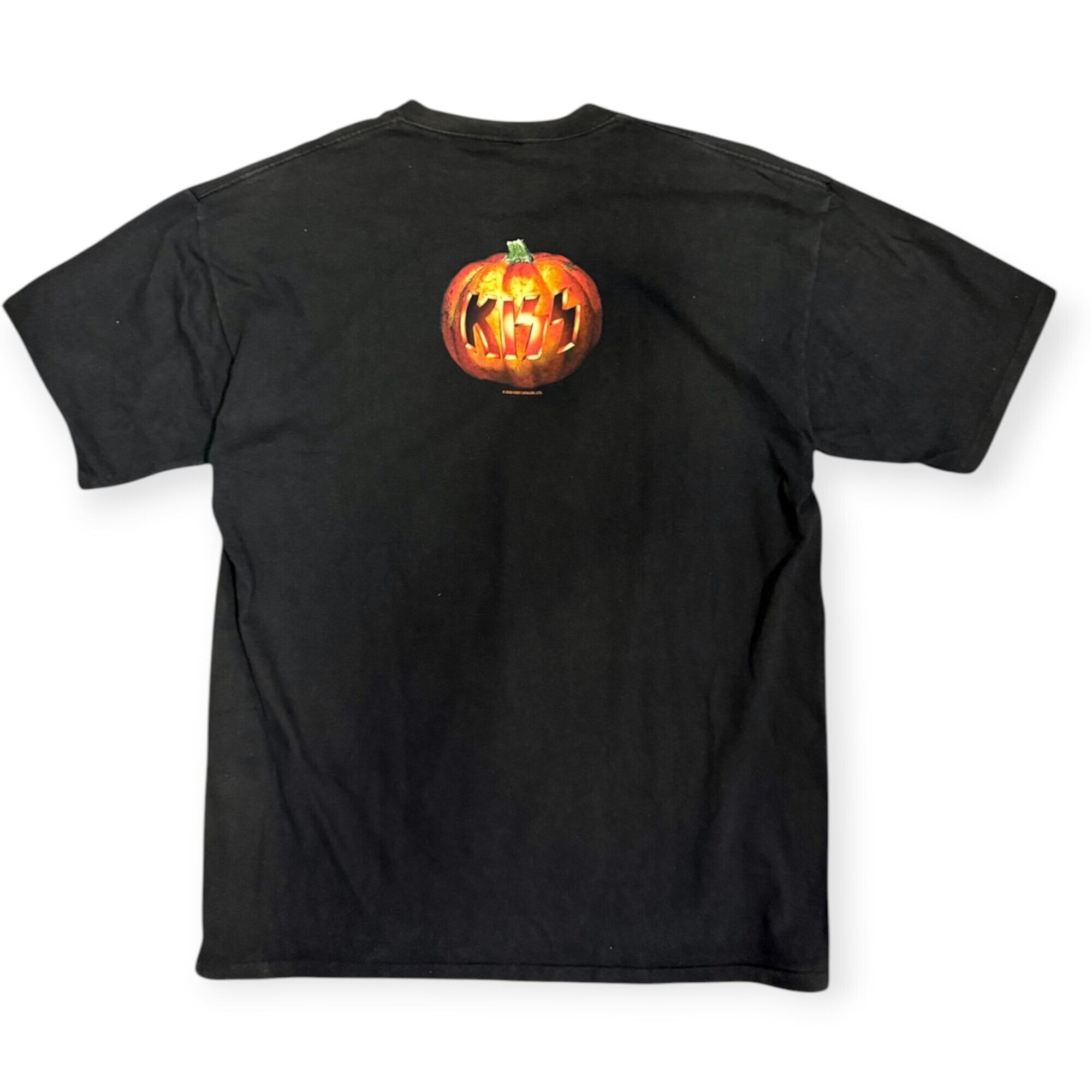 アメリカを代表するロックブランド「KISS」の2000年ツアーTシャツ。フロントには、4人のパンプキンデザインがプリントされたKISSアイテムの中でもユニークな1枚。バックには同じくパンプキンの「KISS」ロゴがプリントされ、男女ともに着こなせるデザインアイテムです。