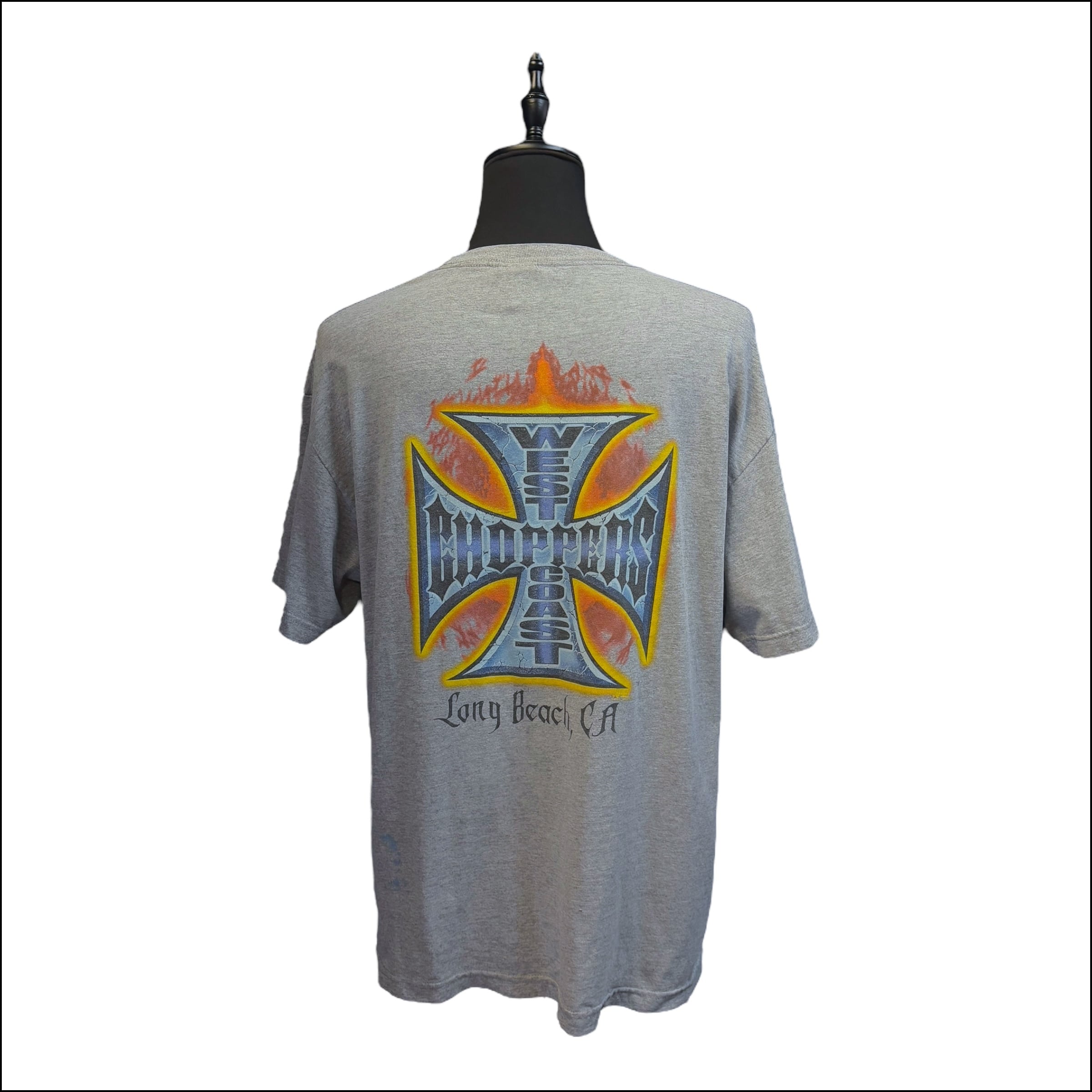 【WEST COAST CHOPPERS】ウエストコーストチョッパーズ クロス×ファイヤープリント Tシャツ 90’s XL相当