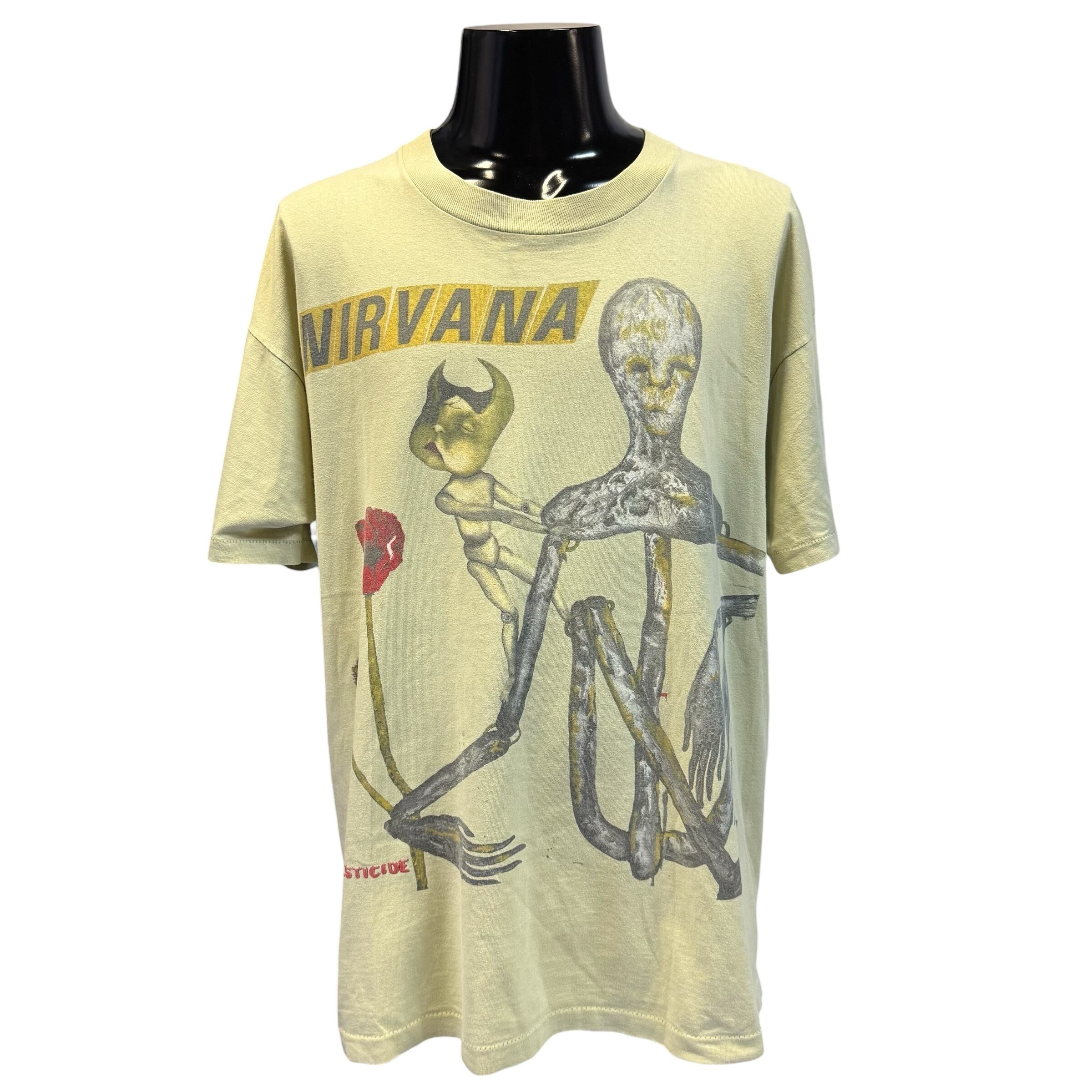 NIRVANA「INCESTICIDE」Tシャツは、1992年発売のアルバムジャケットデザインを使用し、フロントのアートはカート・コバーン自身がデザイン。