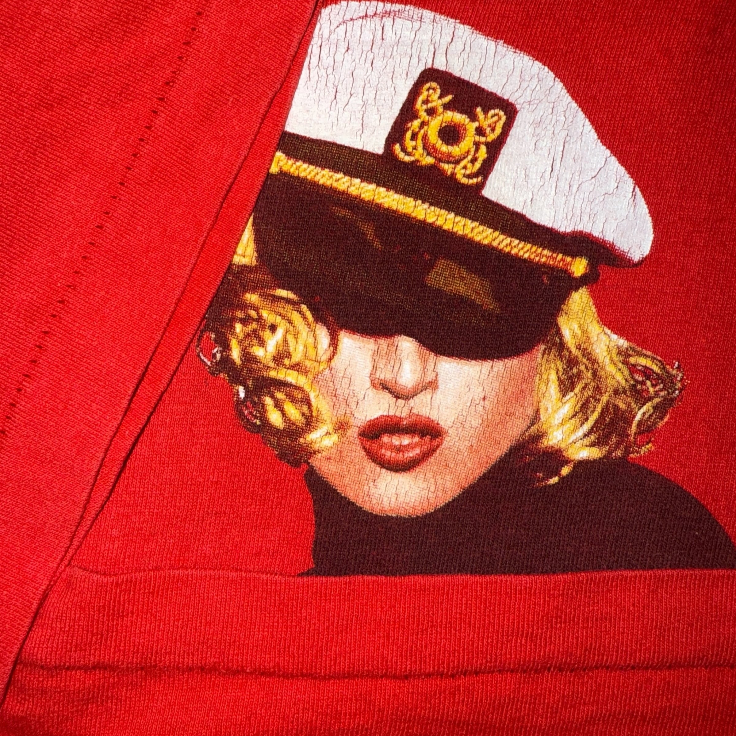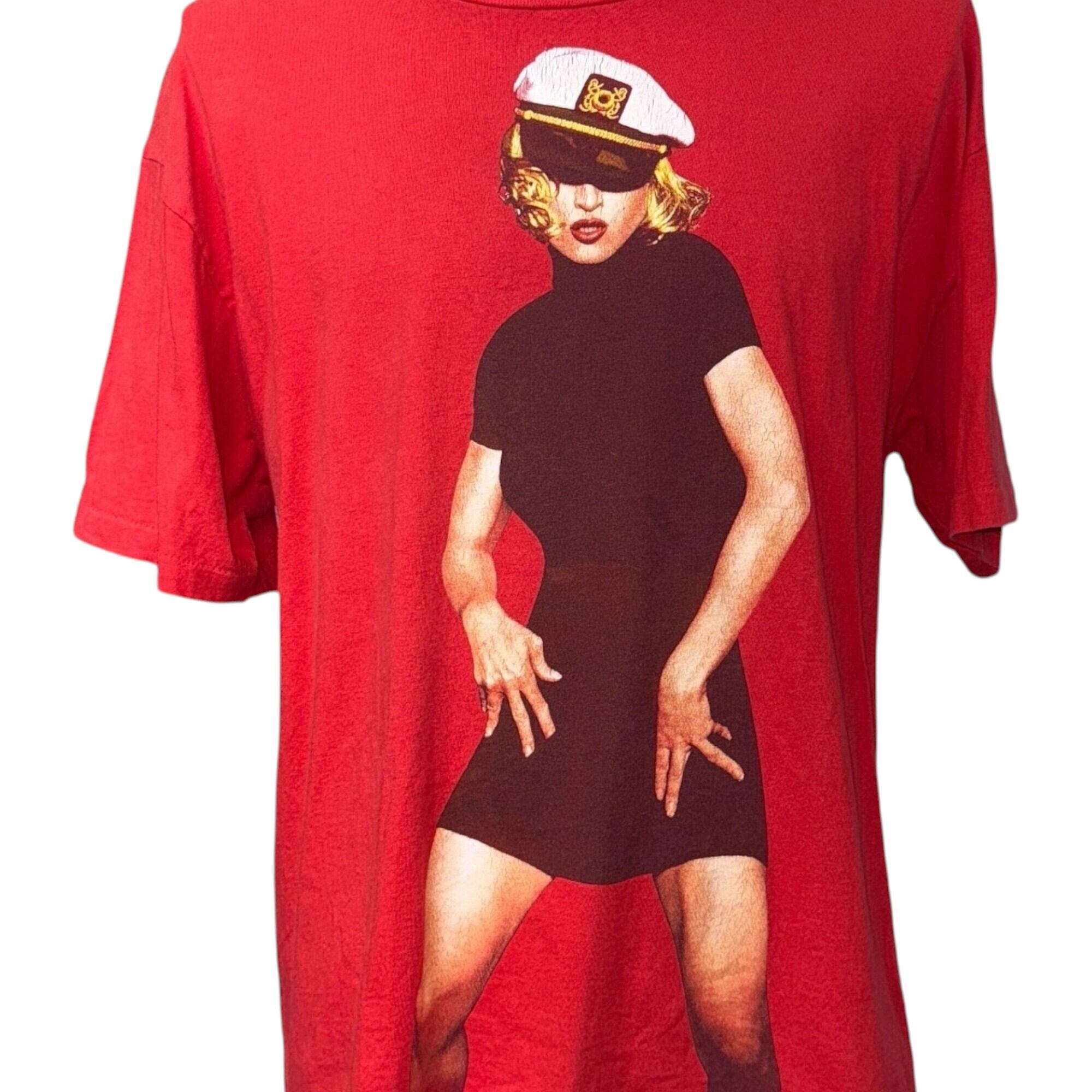 マドンナ(Madonna) の存在感が炸裂する鮮烈な赤のボディに、キャプテンハット&ミニドレス姿のマドンナが大胆にプリントされたデザイン。