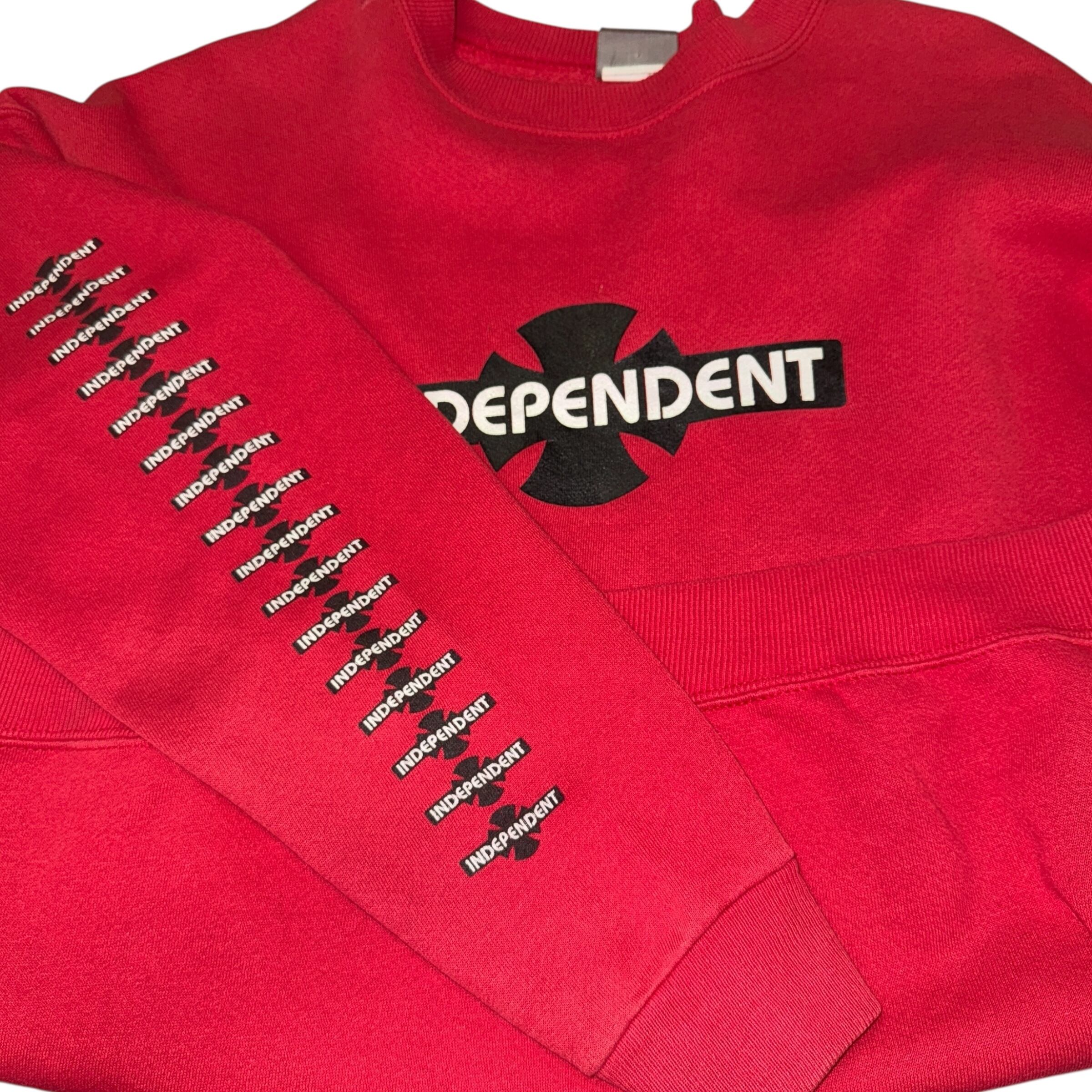 赤スウェットも胸×スリーブにインディペンデントのロゴ入りでコーデしやすいです。