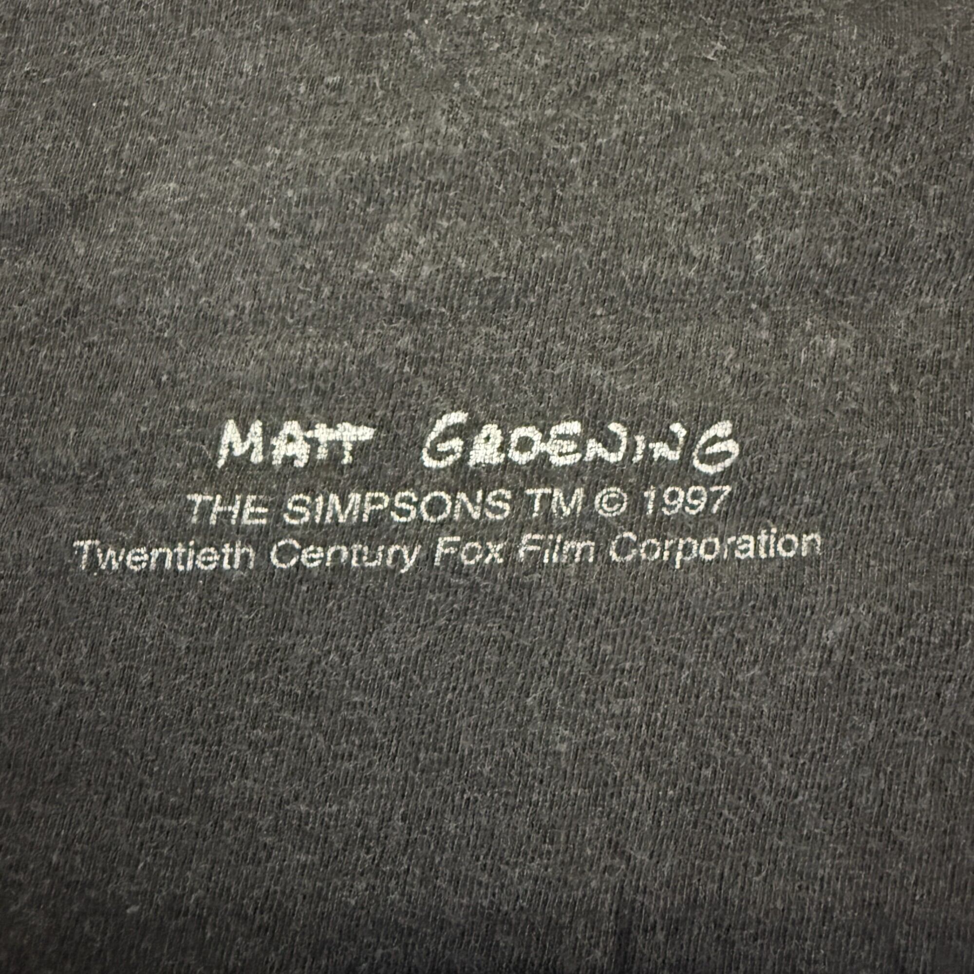 ザ・シンプソンズで代表的なキャラクター「ホーマー・シンプソンズ」が変装したコメディTシャツ。1997年コピーライト入り。