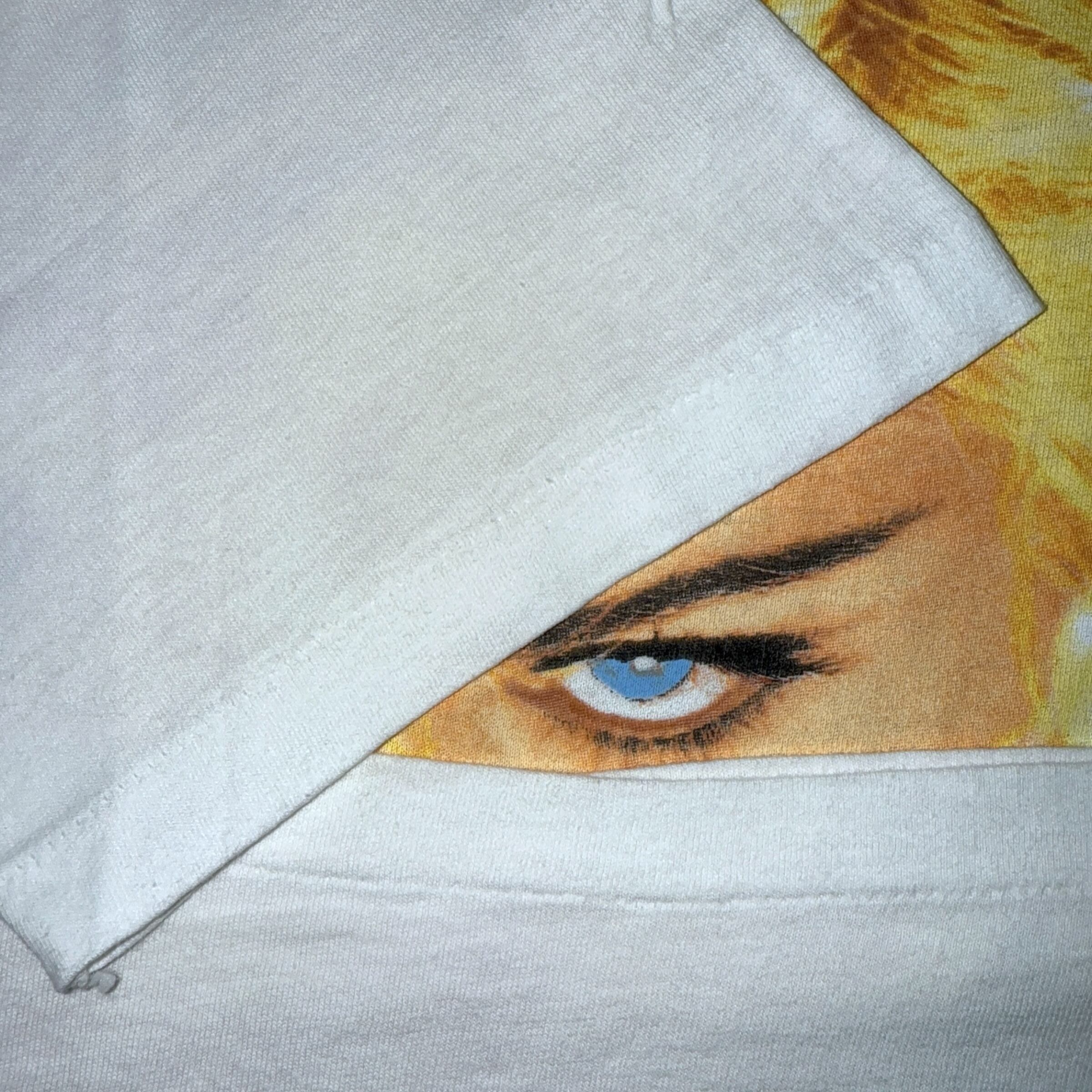 金髪×ブルーアイのマドンナが印象的な、存在感MAXのフォトTシャツ。