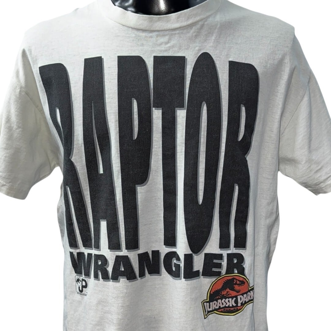 存在感抜群の“RAPTOR WRANGLER”ビッグロゴに、ジュラシックパークの名ロゴが映える1枚。程よいヴィンテージ感がスタイルに深みをプラス◎