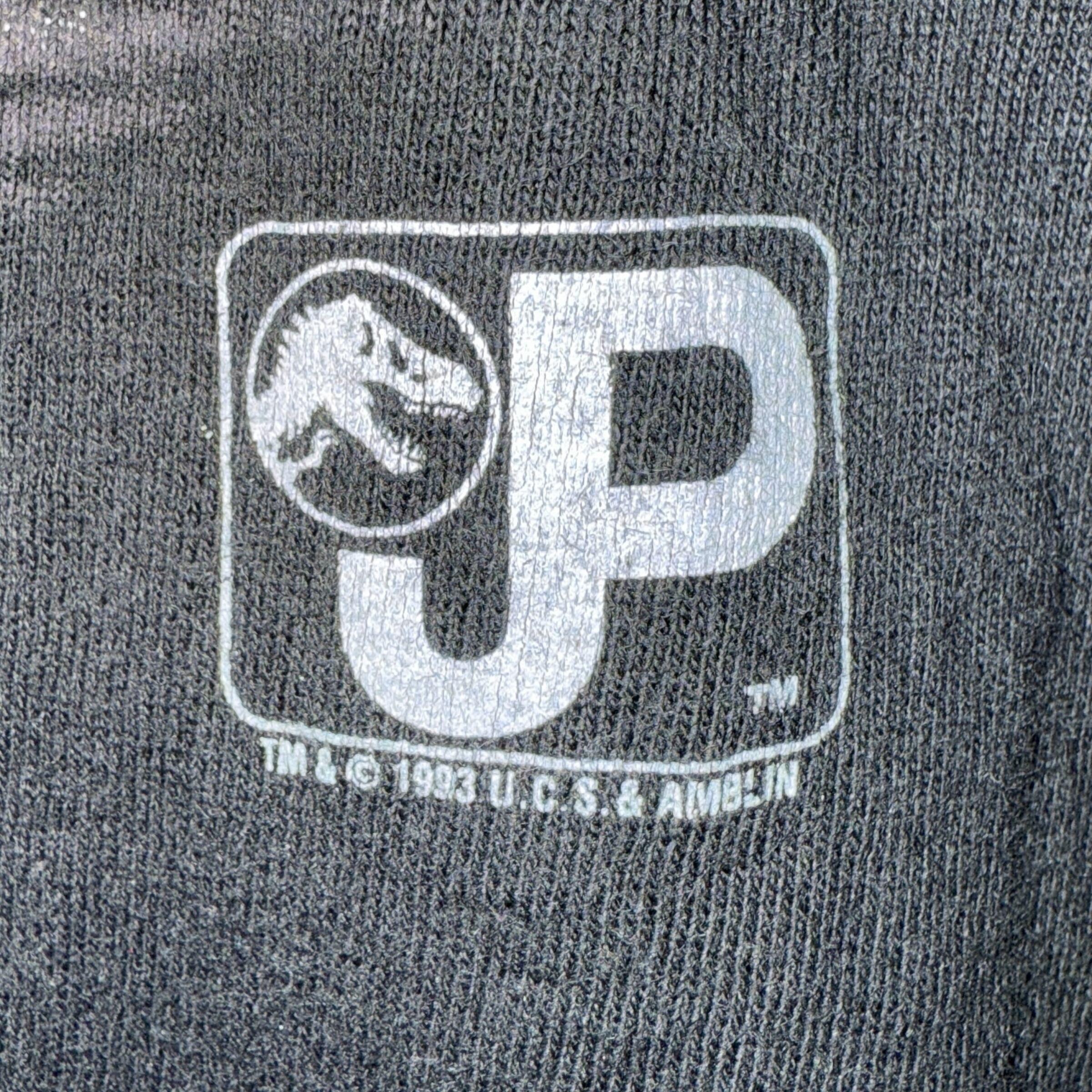 ブラックボディに映える深みあるグラフィックで、ジュラシックパークTeeの中でも珍しいデザインです。