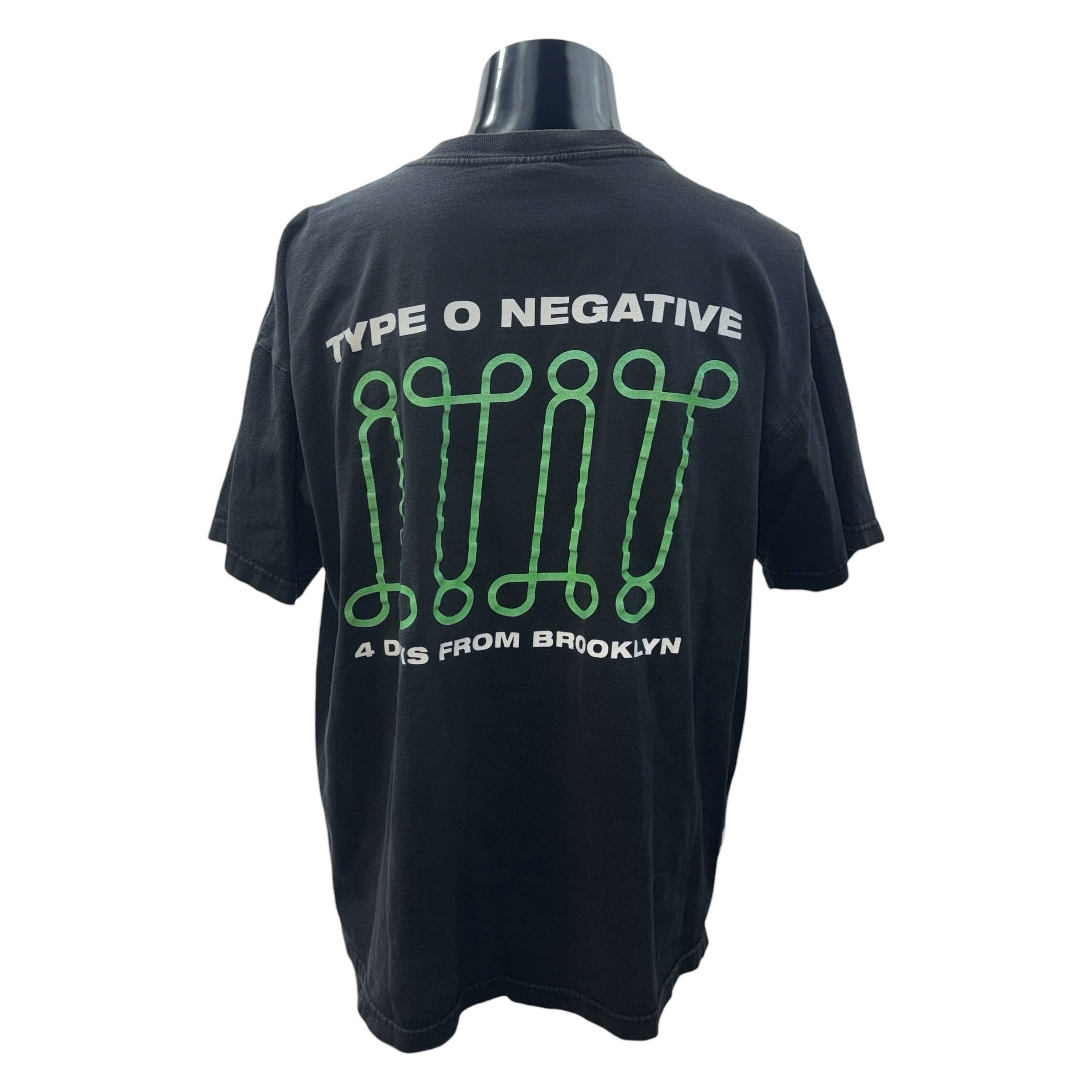 Type O Negativeの象徴である「グリーン×ブラック」のカラーリングが映える、1999年コピーライト入りのオフィシャルTシャツです。