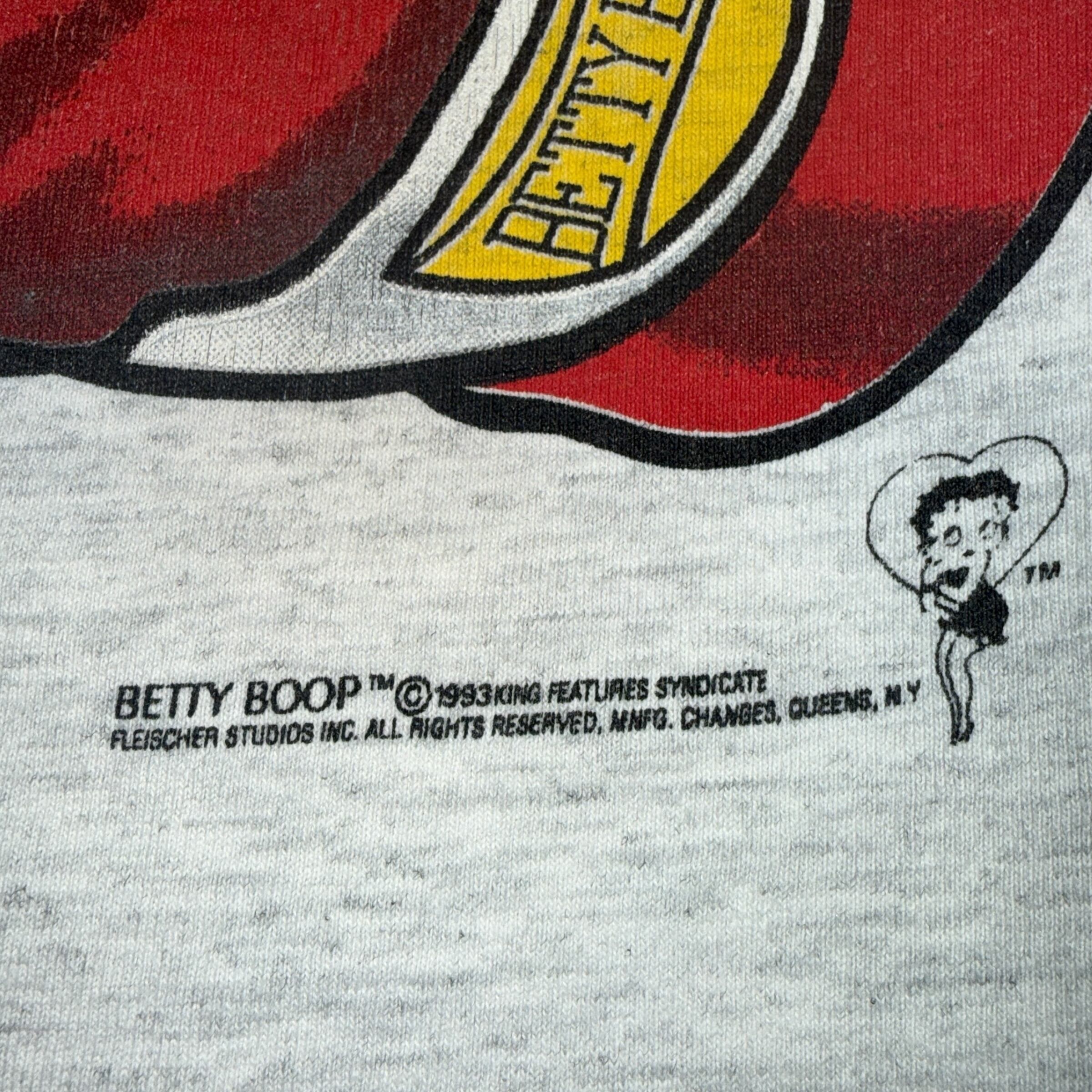 1993年コピーライト入りのヴィンテージTシャツ。 ボクシンググローブを構えたベティ・ブープが、フロント・バック共に大判でプリントされた一着です。