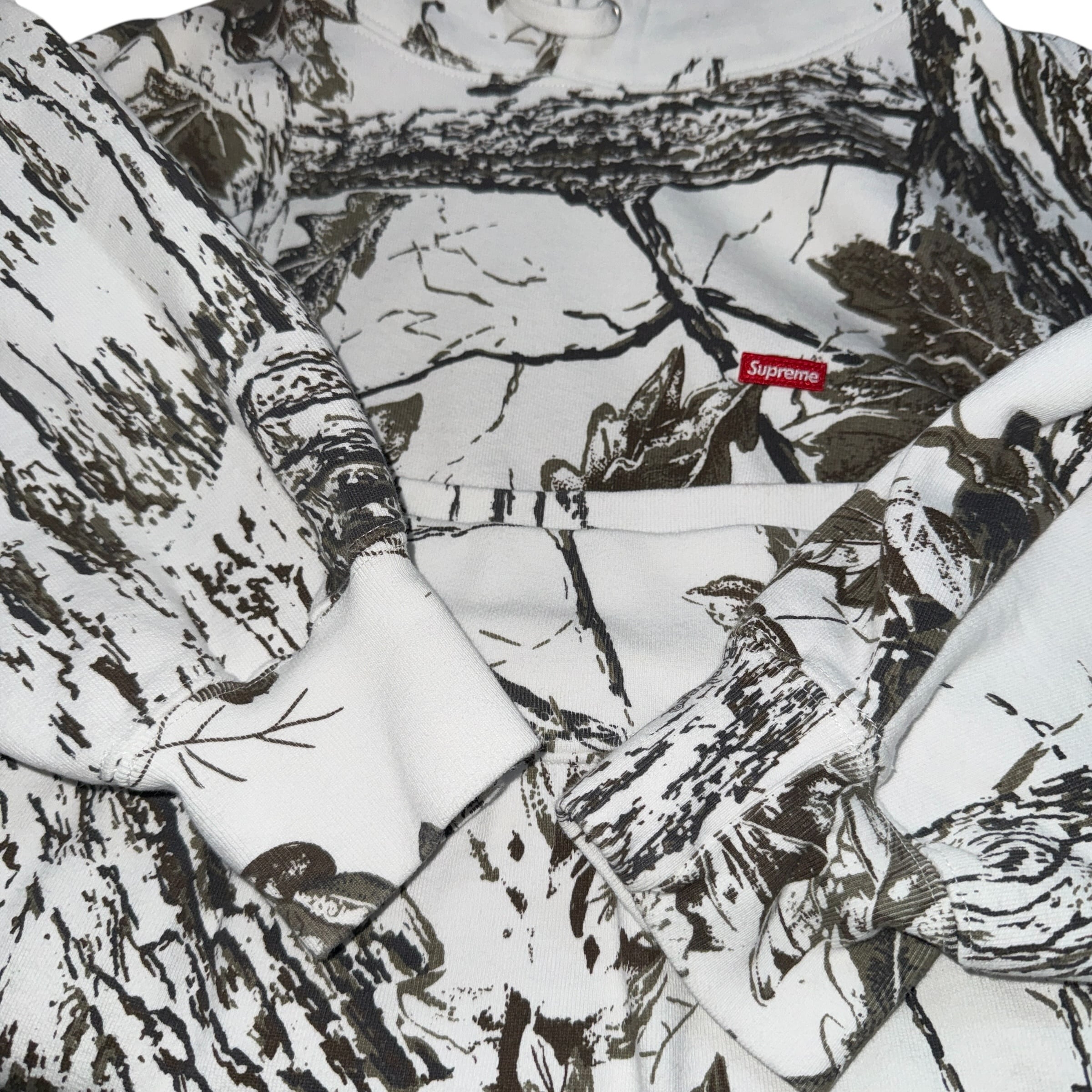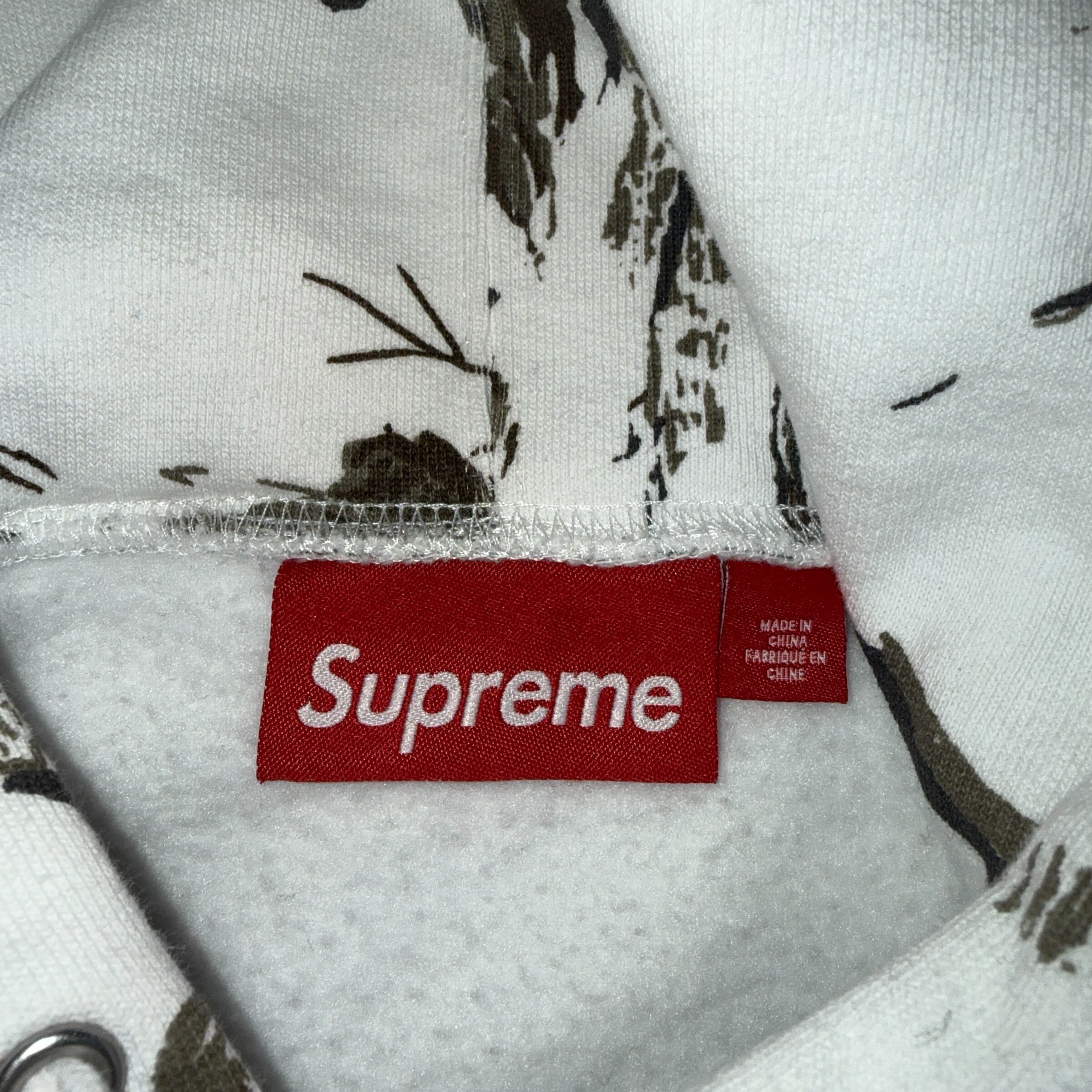 NYスケートカルチャーから生まれたストリートアイコンSUPREMEの24SSフーディ。リアルツリー社のスノーカモ柄が映える一着。