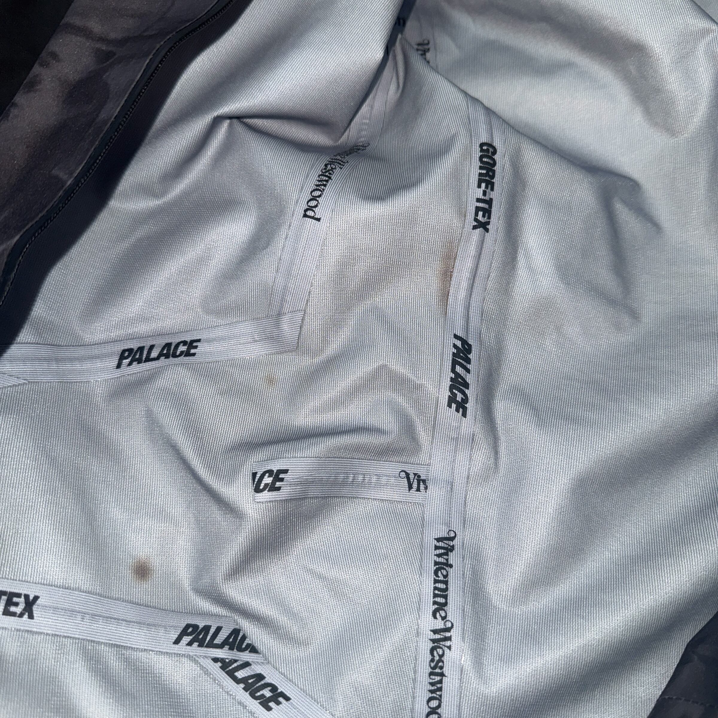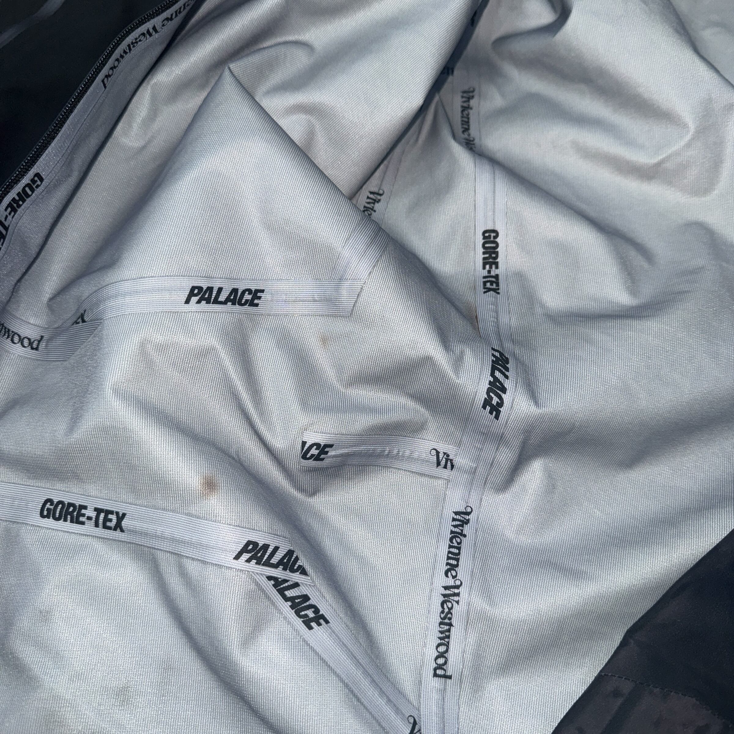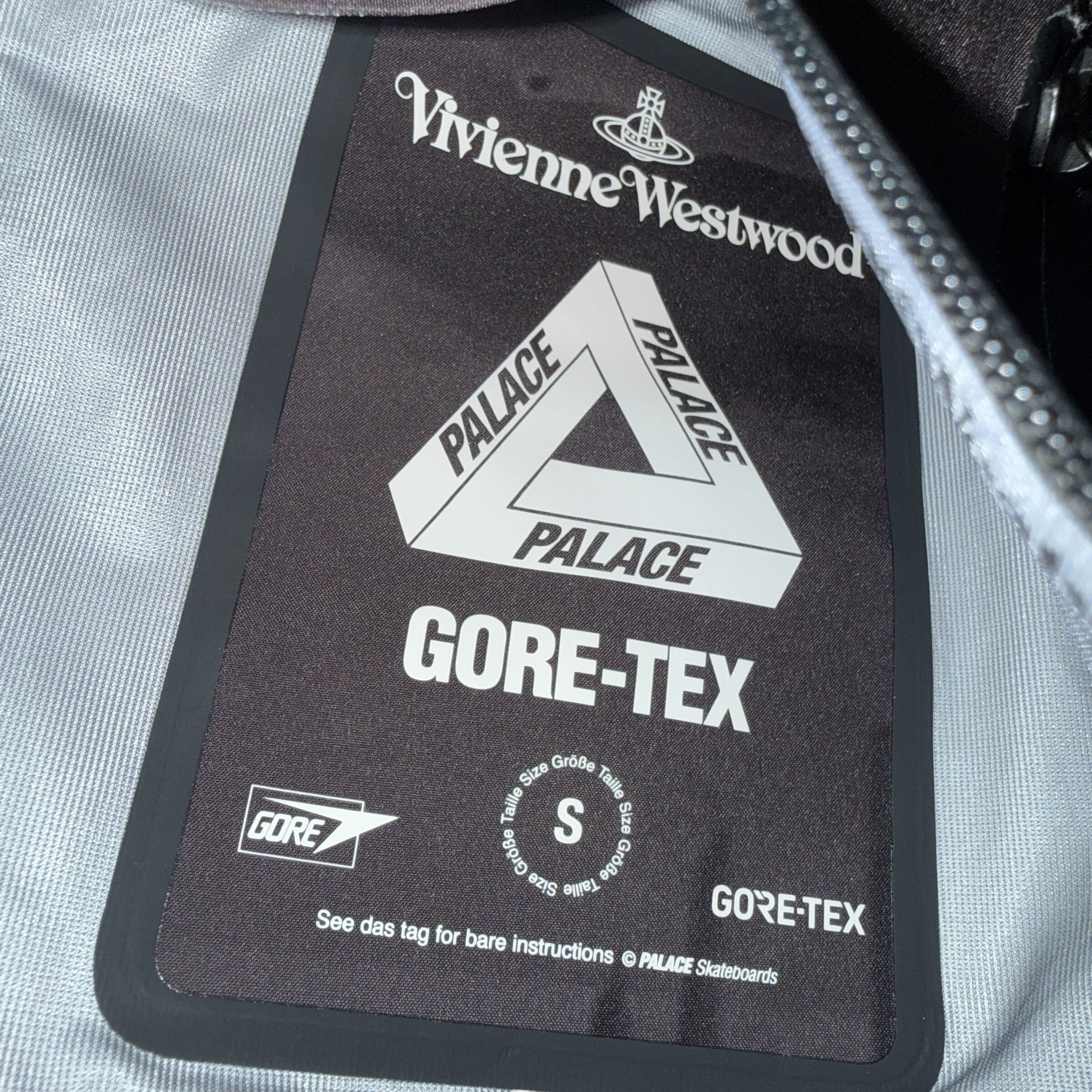 Vivienne Westwoodの伝統的なロゴとPalace SkateboardsのGORE-TEXパンツです。