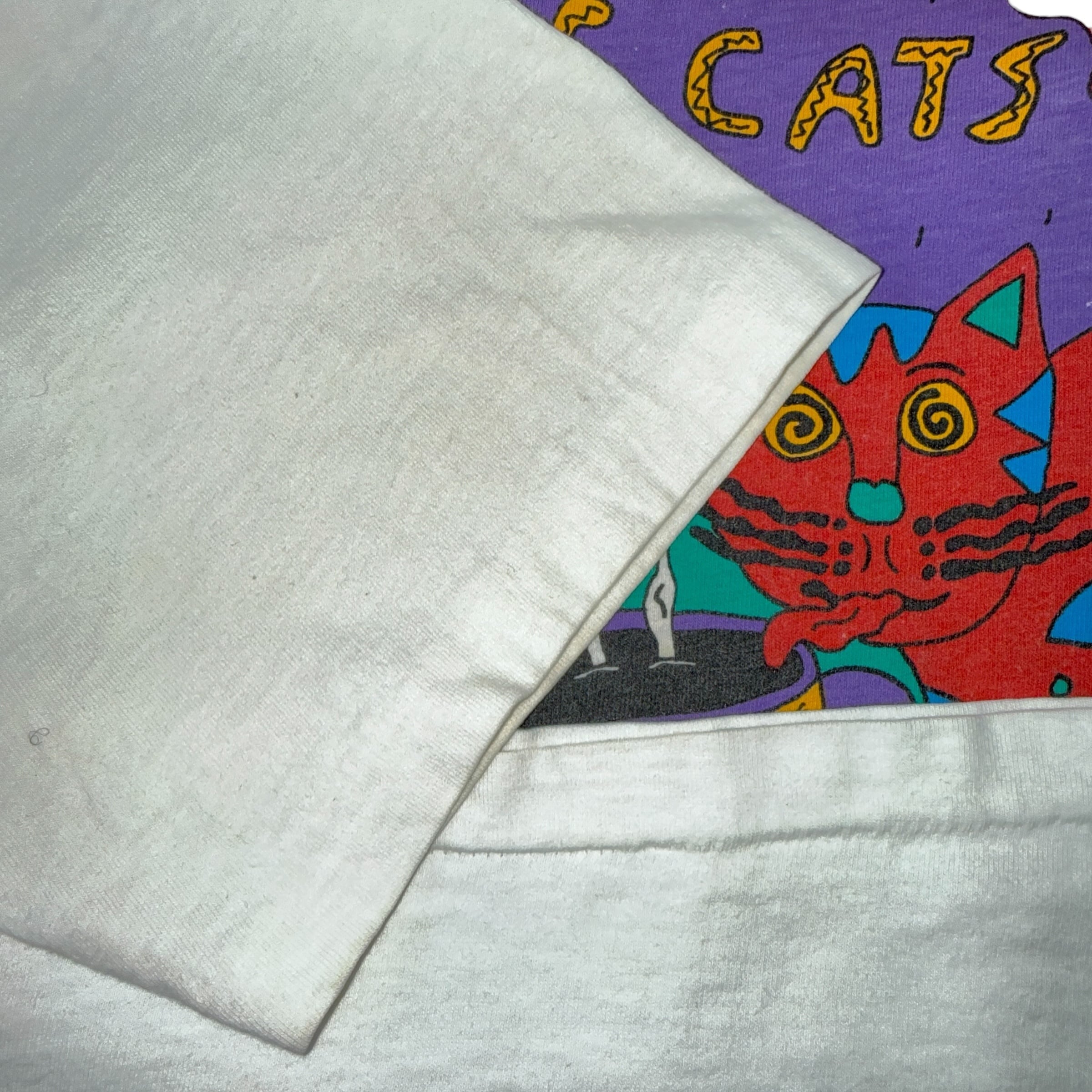 90sのコピーライトが入る名作「COFFEE CATS」グラフィック。サイケデリックな配色と、ポップアートのような猫の表情が唯一無二の存在感を放ちます。