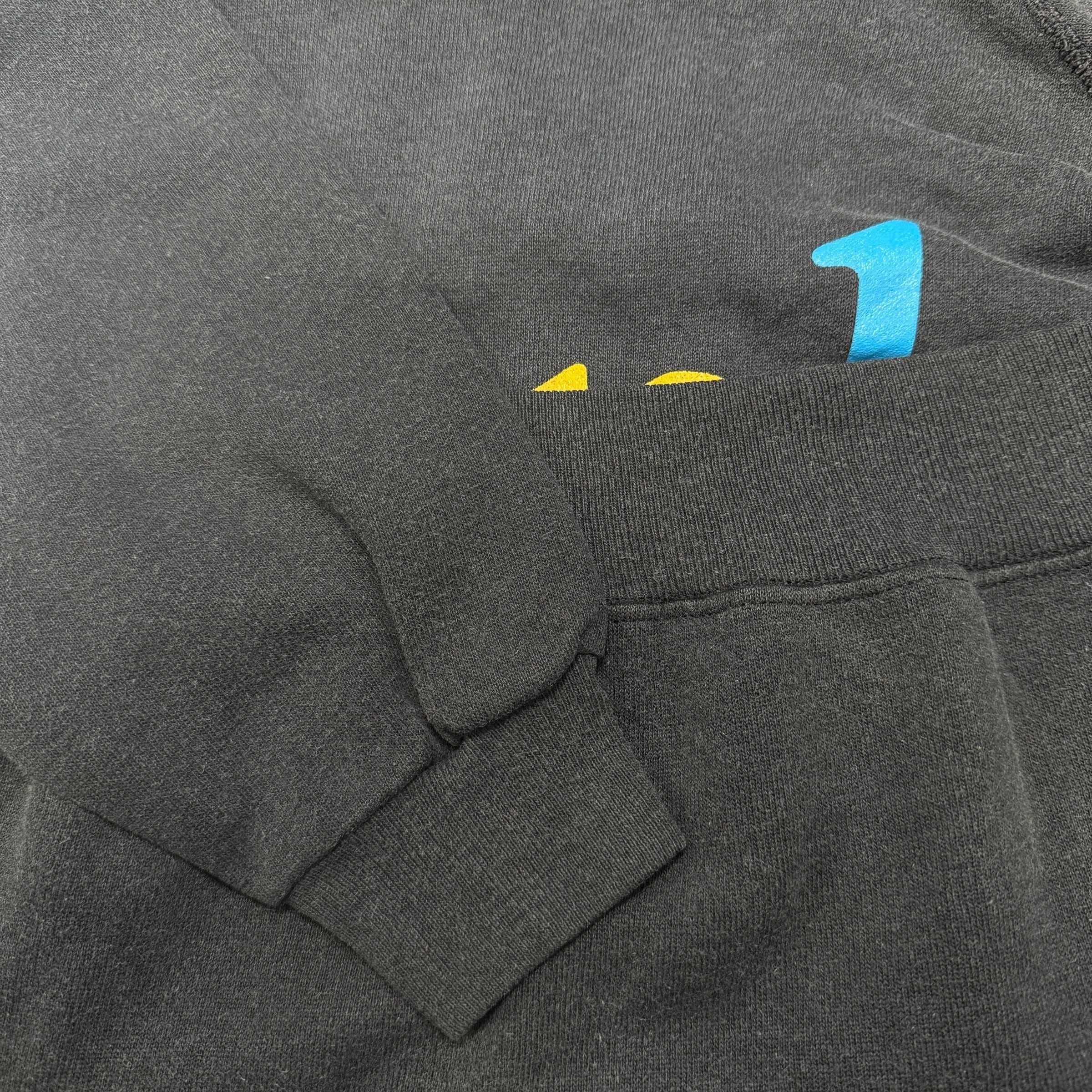 フェード感のあるブラックボディに鮮烈なタイポグラフィが映えるスウェットです。